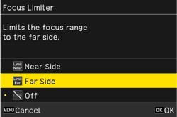 Můžete omezit zaostřovací vzdálenost podle fotografovaného objektu, což umožňuje plynulé zaostřování. Funkci „Omezovač zaostření“ lze nastavit na [Blízko], [Daleko] nebo [Vypnuto]. Nastavení [Blízko] je účinné při fotografování bližších objektů, když chcete zabránit přepnutí automatického zaostřování na pozadí. Nastavení [Daleko] je užitečné pro zabránění automatickému zaostřování na objekty a osoby v popředí při pořizování běžných snímků.