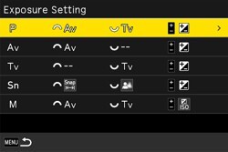 Kompenzaci expozice lze nastavit v krocích po 1/3 EV v rozsahu ±5,0 (±2,0 při nahrávání videa).