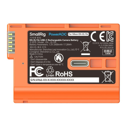 SmallRig 4966 EN-EL15c USB-C Rechargeable Camera Battery Orange