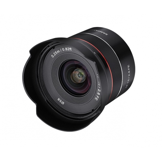 Samyang AF 18mm f/2.8 Sony FE je velmi kompaktní a lehký ultra širokúhlý objektiv pro bezzrcadlové fotoaparáty Sony s bajonetem E/FE. Díky diagonálnímu úhlu záběru 100° (u full frame fotoaparátů) je tento objektiv ideální pro fotografování úžasných výhledů, pobřeží, architektury, měst s rušnými náměstími a úzkými uličkami – nebo také detailních akčních a sportovních scén. Objektiv může zaostřit už na pouhých 25cm!