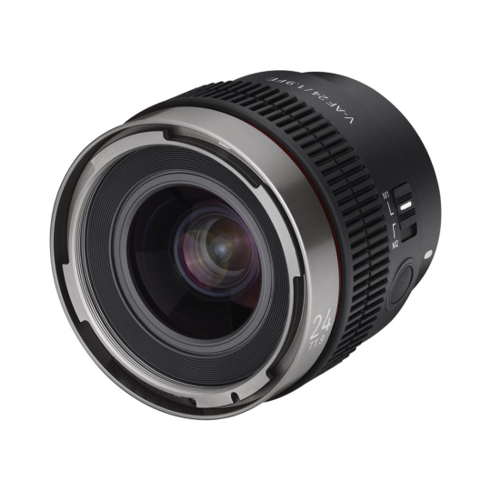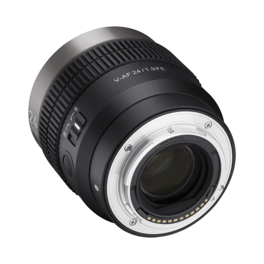Konstrukce objektivu V-AF 24 mm T1,9 sestává z 11 členů v 8 skupinách a obsahuje speciální čočky – 2 ED, 2 ASP a 3 HR, které videům dodávají ostrý a filmový vzhled. Zaostřování je zajišťováno lineárním zaostřovacím motorem Samyang STM, který poskytuje tiché a plynulé automatické zaostřování s minimalizováním vibrací a šumu. Kruhové 9lamelové provedení clony vytváří jemný bokeh s rozmazaným pozadím, díky kterému subjekty vyniknou a snímek bude budit dojem hlubokého prostoru.
