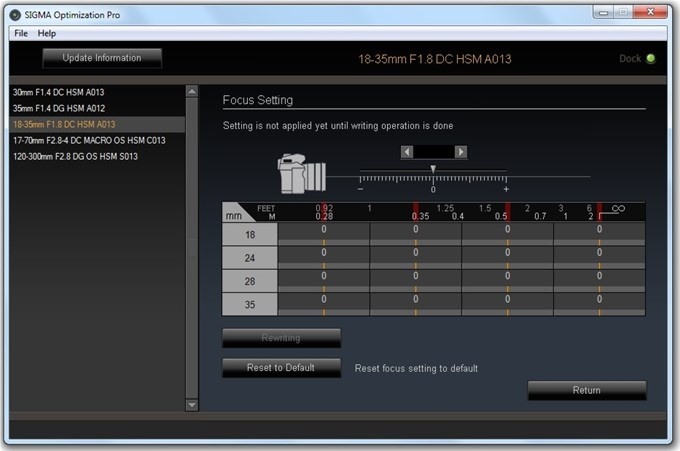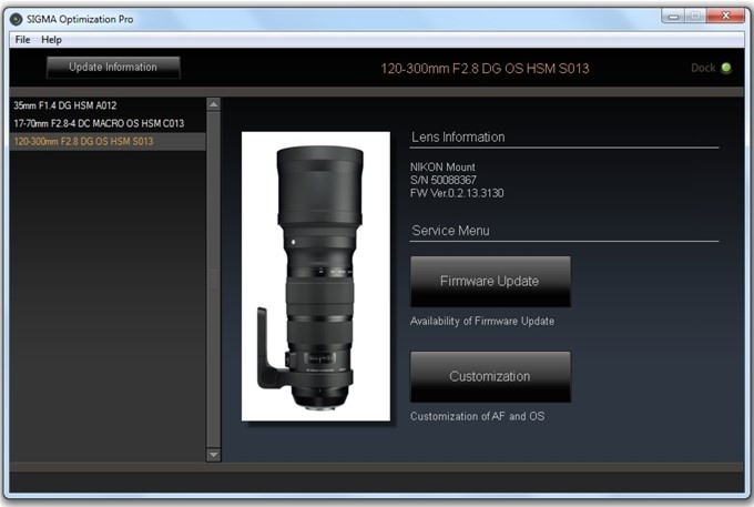Možnost nastavení a úpravy objektivu přes speciální software “SIGMA Optimization Pro” .