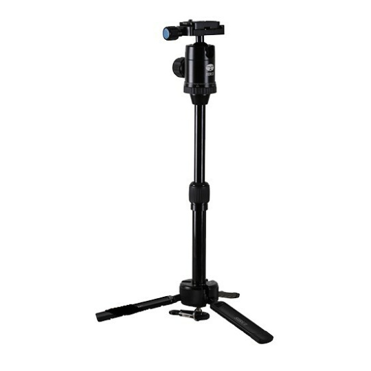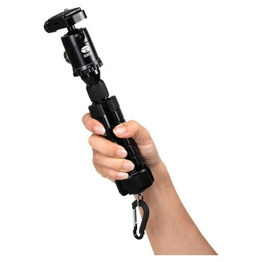 Tento malý stativ je extrémně lehký, ale splní všechny úkoly - ať už jako ruční držák pro akční kameru nebo jako stolní stativ pro kompaktní fotoaparát - funguje dobře v každé situaci. Velké, stabilní opěrné nohy v délce 10 cm jsou schopné unést digitální fotoaparáty a videokamery o hmotnosti až 4 kg. Gumové koncovky zajišťují vysokou stabilitu při použití jako stolní stativ.