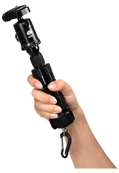 Tento malý stativ je extrémně lehký, ale splní všechny úkoly - ať už jako ruční držák pro akční kameru nebo jako stolní stativ pro kompaktní fotoaparát - funguje dobře v každé situaci. Velké, stabilní opěrné nohy v délce 10 cm jsou schopné unést digitální fotoaparáty a videokamery o hmotnosti až 4 kg. Gumové koncovky zajišťují vysokou stabilitu při použití jako stolní stativ.