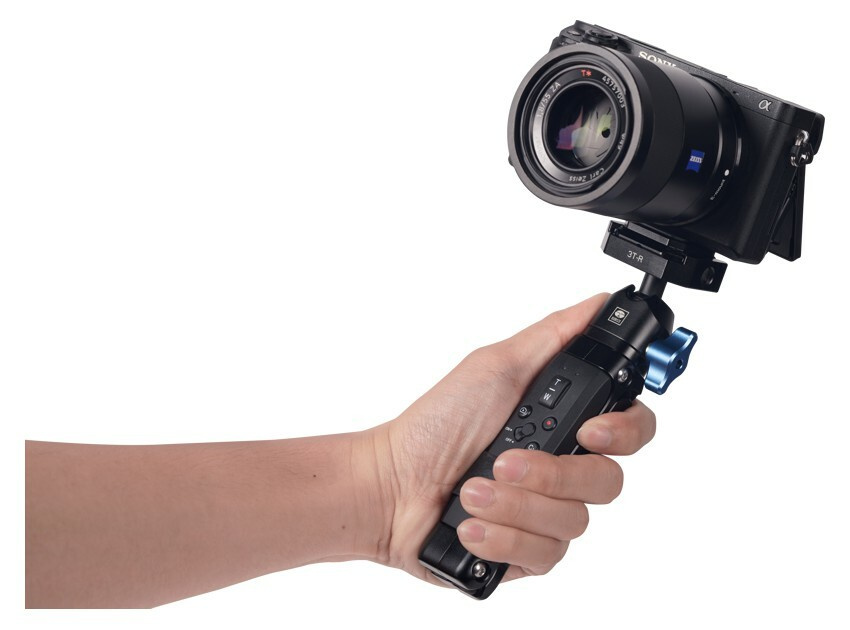 Bluetooth přijímač – Na zadní straně stativu je připevněn Bluetooth přijímač, který je speciálně navržen pro ty fotoaparáty Sony, které nemají nativní Bluetooth. Vložte přijímač do multiterminálu kamery a spárujte obě zařízení. Po úspěšném spárování lze kameru ovládat přímo pomocí dálkového ovladače.
