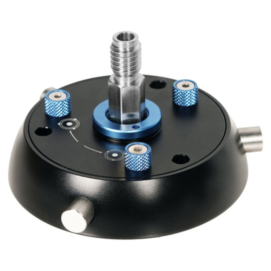 Dvouúčelový adaptér pro miskovou hlavu Otočením spodní desky můžete přepínat mezi pevnou a vyrovnávací základnou. Adaptér miskové hlavy je dodáván s plochou plošinou pro použití s plochými základnami.