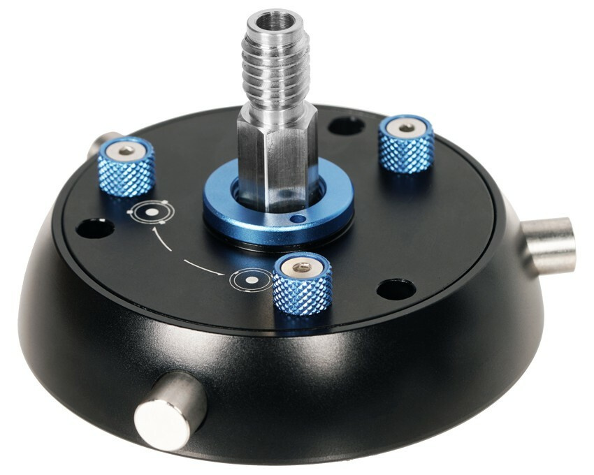 Dvouúčelový adaptér pro miskovou hlavu Otočením spodní desky můžete přepínat mezi pevnou a vyrovnávací základnou. Adaptér miskové hlavy je dodáván s plochou plošinou pro použití s plochými základnami.