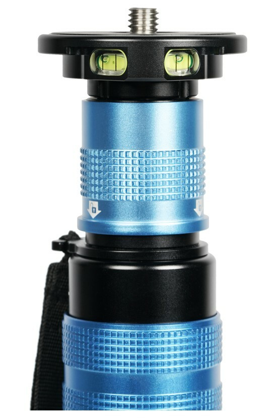 Dvě bublinové vodováhy na základně vám umožní vždy udržovat monopod v dobré rovnováze, i když děláte vysoce mobilní venkovní focení