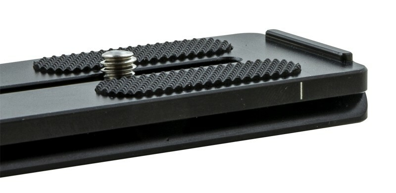 Dva šrouby (1/4" a 3/8") pro zajištění správného vyrovnání a maximální bezpečnosti. Zadní hřeben pomáhá zabránit otáčení objektivu, pokud je použit pouze jeden šroub.