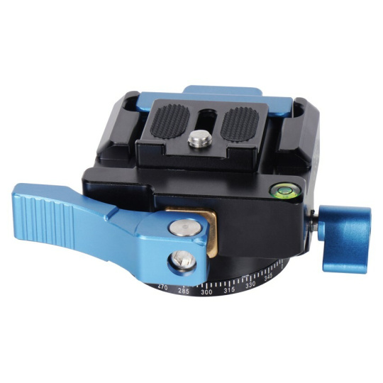 Kompatibilní se stativem, monopodem atd. V kombinaci s panoramatickou základnou umožňuje tento rychloupínák rychlé přepínání z jednoho podpůrného systému na druhý a poskytuje funkci otáčení v rozsahu 360°, což fotografům/kameramanům umožňuje flexibilnější a plynulejší fotografování.