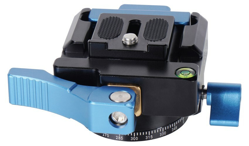 Kompatibilní se stativem, monopodem atd. V kombinaci s panoramatickou základnou umožňuje tento rychloupínák rychlé přepínání z jednoho podpůrného systému na druhý a poskytuje funkci otáčení v rozsahu 360°, což fotografům/kameramanům umožňuje flexibilnější a plynulejší fotografování.