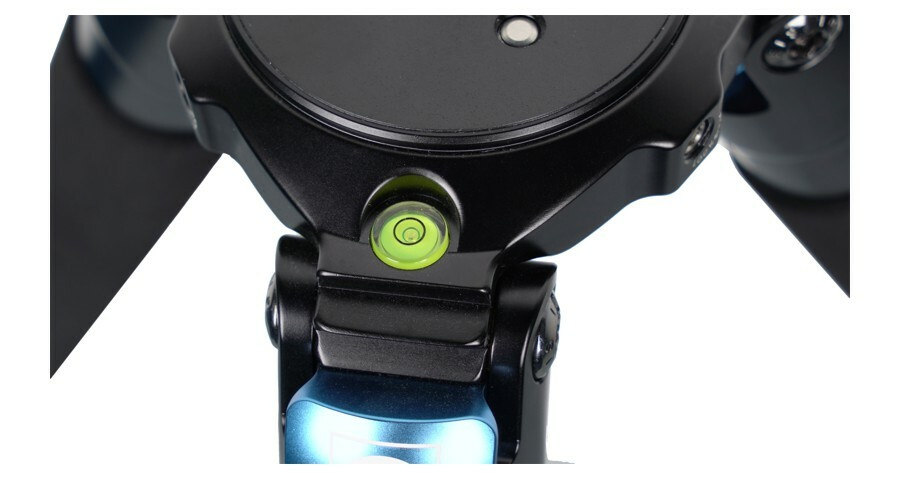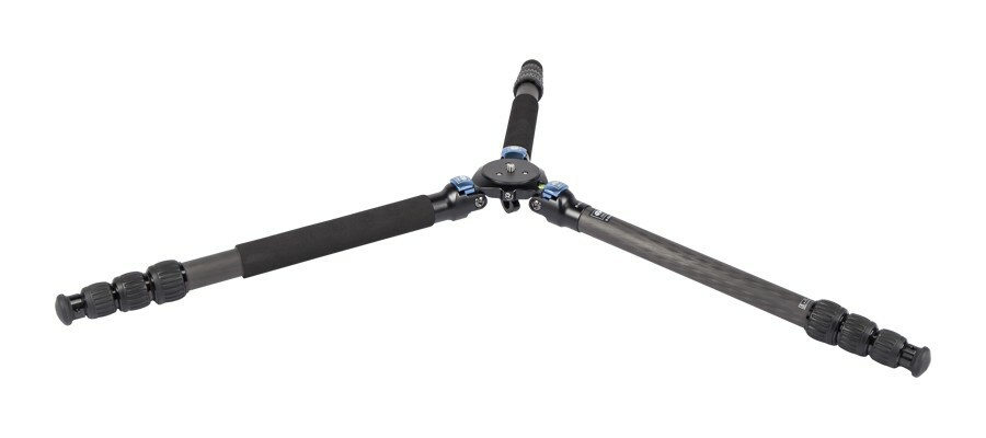 Nohy stativu z uhlíkových vláken se rozkládají nezávisle a k dosažení různých výšek a jako pomoc k zajištění rovnováhy v nerovném terénu mají tři zajišťovací polohy.