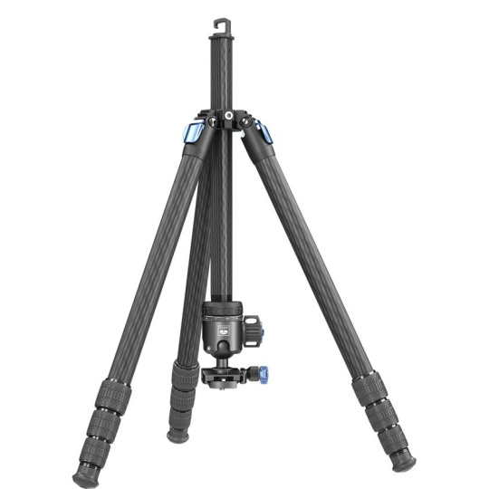 Stativ váží pouhých 1200 g (bez hlavy) a unese celkovou zátěž o hmotnosti až 12 kg! Nohy jsou vyrobeny z 8 vrstev uhlíkových vláken, která snižují hmotnost a vibrace, a zvyšují stabilitu. Středový sloupek svým trojúhelníkovým tvarem vylepšuje pevnost a umožňuje také extrémně nízký profil stativu ve složeném stavu.