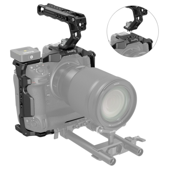 Obsahuje otvory se závitem 1/4''-20 a polohovací otvory ARRI 3/8"-16 pro SmallRig Side Handle 2093 nebo 2426 pro boční natáčení z ruky a pohyby fotoaparátu a polohovací otvor ARRI 3/8"-16 v horní části rukojeť pro držák monitoru 2903 a držák pro mikrofony, LED světla.