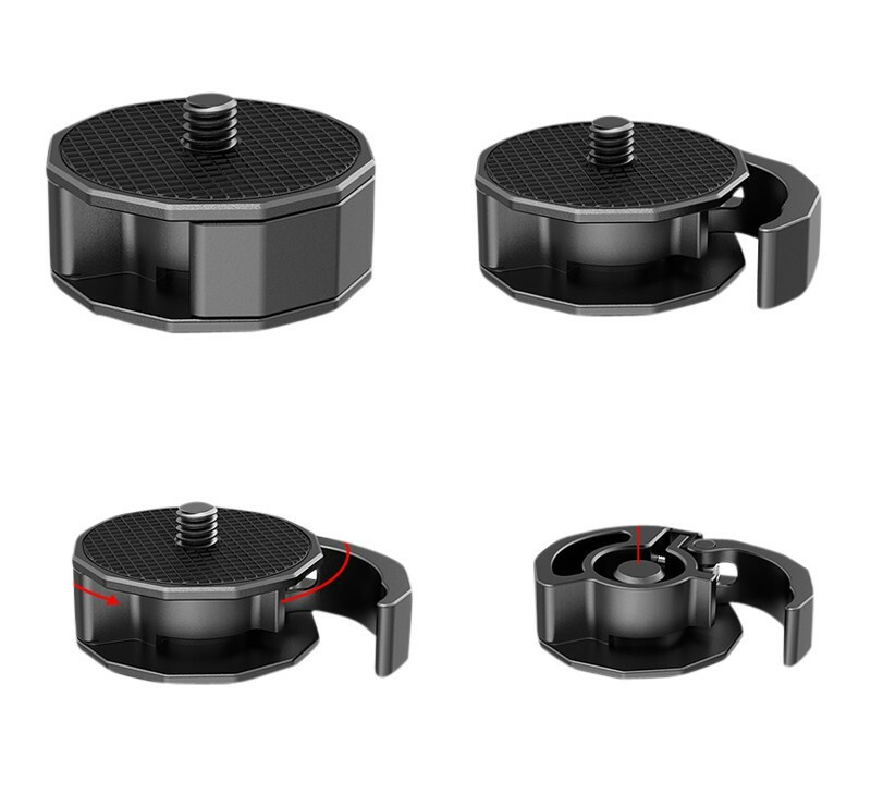 Adaptér pro okamžité připevnění mini stativů a monopodů ke stabilizátorům gimbalu, fotoaparátu nebo příslušenství. Adaptér je vybaven 1/4"-20 samec/samice a skládá se ze dvou částí, přičemž jedna se přišroubuje ke stativu/monopodu a druhá k držáku gimbalu nebo fotoaparátu. Adaptér zabraňuje nutnosti pokaždé šroubovat a odšroubovávat zařízení od stativu. Může být také oddělen od gimbalu pomocí různých dalších 1/4"-20 příslušenství, jako jsou monitory, světla a klece na fotoaparáty/telefony. Kapesní velikost a hmotnost pouze 38 g - snadné skladování.