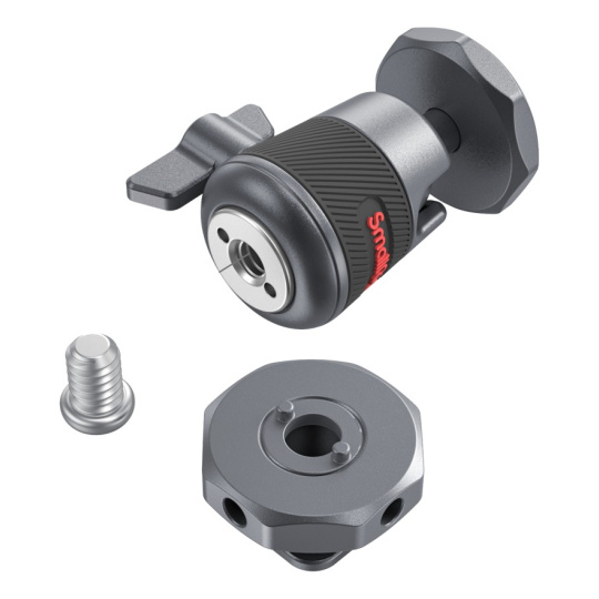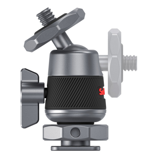 Mini kulová hlava SmallRig s odnímatelným držákem Cold Shoe Mount (dvoudílný) je navržena pro připevnění video příslušenství ke kameře, jako jsou mikrofony, LED světla, monitory, akční kamery atd. Lze ji namontovat na sáňky fotoaparátu nebo na klece a konzole opatřené slotem sáněk. Hlava má 1/4"-20 šroub nahoře pro připevnění příslušenství. Kulová hlava se může otáčet o 360° a naklánět o 135°, má nosnost 1,5 kg. Spodní uzamykací deska má otvory, které umožňují zajištění pomocí imbusového klíče pro zajištění bezpečnosti. Kulová hlava má na spodní straně vnitřní závit 1/4”-20 umožňuje připevnění mini stativu po vyjmutí adaptéru Kulová hlava je kompaktní, lehká a snadno se přenáší, váží pouze 45 g.
