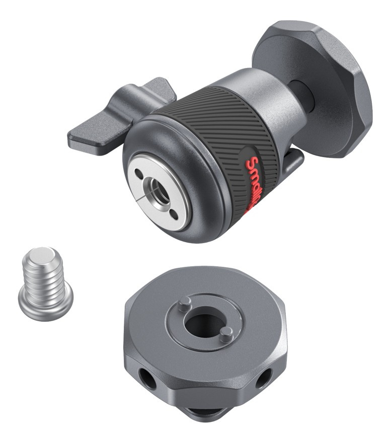 Mini kulová hlava SmallRig s odnímatelným držákem Cold Shoe Mount (dvoudílný) je navržena pro připevnění video příslušenství ke kameře, jako jsou mikrofony, LED světla, monitory, akční kamery atd. Lze ji namontovat na sáňky fotoaparátu nebo na klece a konzole opatřené slotem sáněk. Hlava má 1/4"-20 šroub nahoře pro připevnění příslušenství. Kulová hlava se může otáčet o 360° a naklánět o 135°, má nosnost 1,5 kg. Spodní uzamykací deska má otvory, které umožňují zajištění pomocí imbusového klíče pro zajištění bezpečnosti. Kulová hlava má na spodní straně vnitřní závit 1/4”-20 umožňuje připevnění mini stativu po vyjmutí adaptéru Kulová hlava je kompaktní, lehká a snadno se přenáší, váží pouze 45 g.
