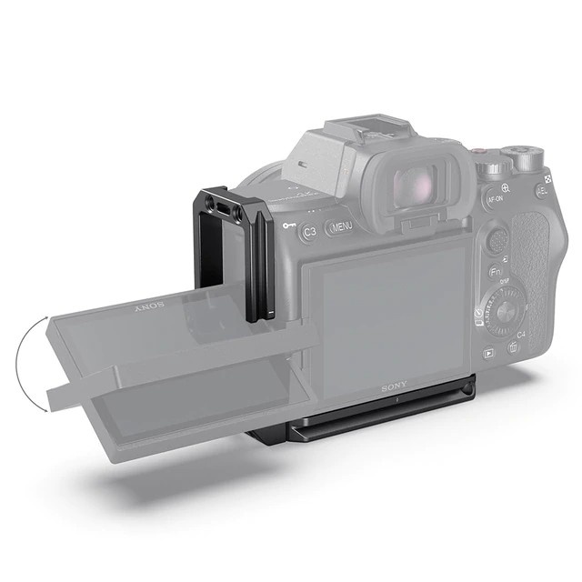 Držák L SmallRig pro Sony Alpha 7S III A7S III A7S3 3003 se připevňuje k fotoaparátu pomocí šroubu 1/4 "-20, konstrukce je uzpůsobena tak aby nedocházelo k přetáčení, gumová podložka zabraňuje kroucení a poškrábání. Boční deska i základní deska jsou kompatibilní s Arca , což umožňuje rychlé přehazování mezi snímáním ve vodorovné a svislé poloze. konzole L neblokuje tlačítka, porty, obrazovku LCD ani baterii fotoaparátu. Celý držák L se může roztáhnout doleva o 20 mm, pokud potřebujete více prostoru pro upevnění nebo uvolnění kabelu. konzole má také s 1/4 "-20 závity pro příslušenství, jako je SmallRig Cable Clamp 1822 nebo SmallRig Cold Shoe Mount BUC2736. Pro snadný přístup je na základní desce uložen plochý šroubovák.
