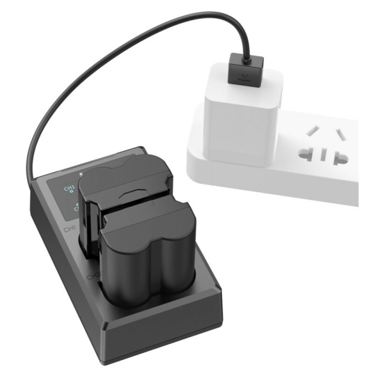 Duální nabíječka baterií může nabíjet dvě baterie současně, přičemž její LCD displej zobrazuje stav nabíjení v reálném čase.