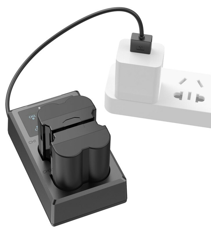 Duální nabíječka baterií může nabíjet dvě baterie současně, přičemž její LCD displej zobrazuje stav nabíjení v reálném čase.