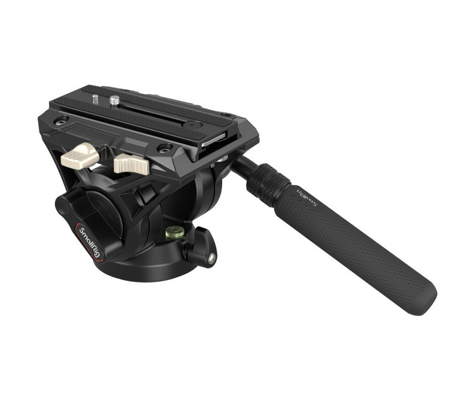 Fluidní hlava je dodávána s teleskopickou rukojetí, která se snadno používá a skladuje. Ve spodní části má otvory se závitem 3/8"-16 pro přímé připojení ke stativům, posuvným kolejničkám a dalšímu vybavení.