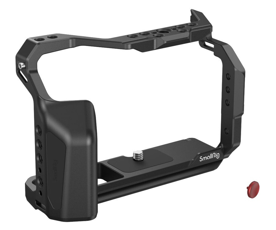 Upevňuje kameru pomocí jednoho šroubu 1/4"-20 ve spodní části a jednoho šroubu M2 na obou stranách s pryžovými podložkami zabraňujícími poškrábání a poskytuje plný přístup k tlačítkům, slotům pro karty, obrazovce a krytu baterie.
