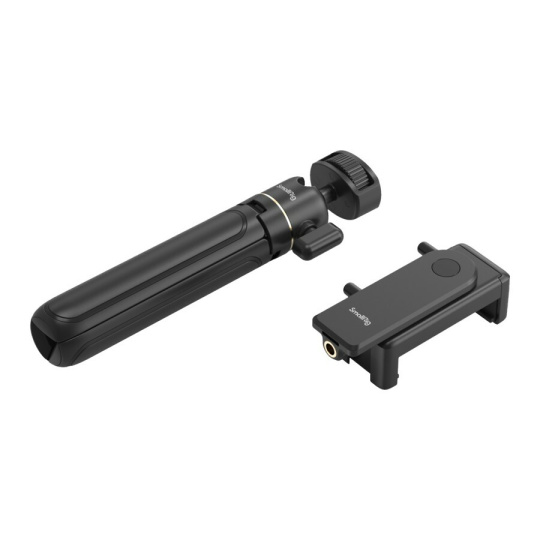 Jedním šroubem 1/4"-20 se stativ připevní k držáku chytrého telefonu, který má dva úchyty cold shoe pro mikrofon, LED video světlo atd.