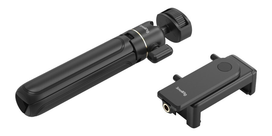 Jedním šroubem 1/4"-20 se stativ připevní k držáku chytrého telefonu, který má dva úchyty cold shoe pro mikrofon, LED video světlo atd.