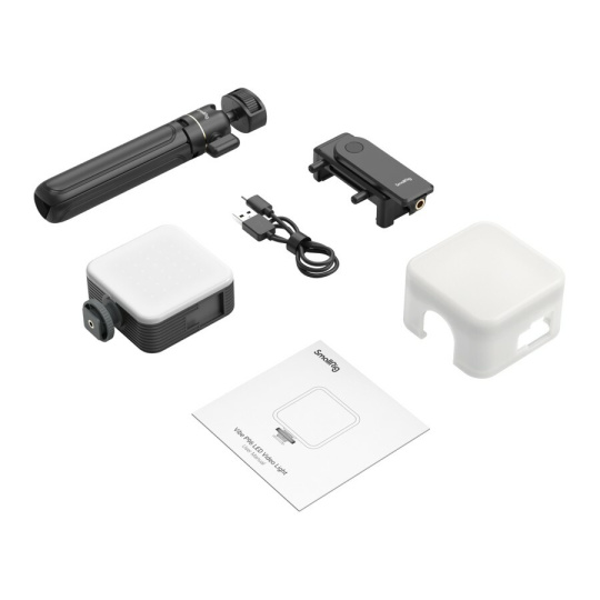 Balení obsahuje: 1x stativ Vlog VT-10, 1x Držák pro snadné upevnění smartphonu s dvojitými úchyty Cold Shoe, 1x LED video světlo Vibe P96, 1x difuzér, 1x nabíjecí kabel typu C, 1x Uživatelská příručka k LED videosvětlu