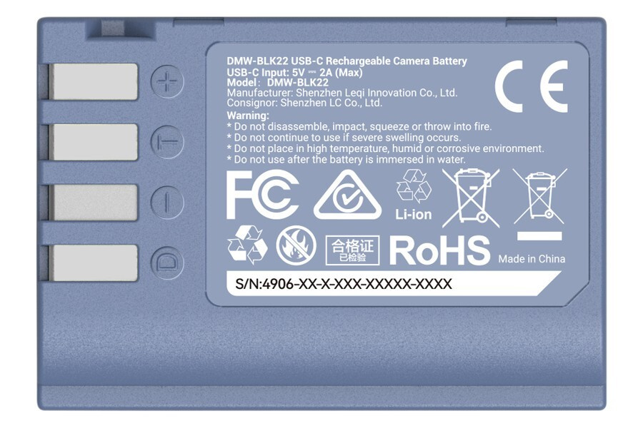 - 1x DMW-BLK22 USB-C dobíjecí baterie fotoaparátu