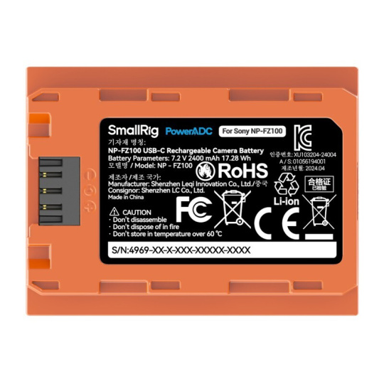 SmallRig 4969 NP-FZ100 USB-C Rechargeable Camera Battery Orange