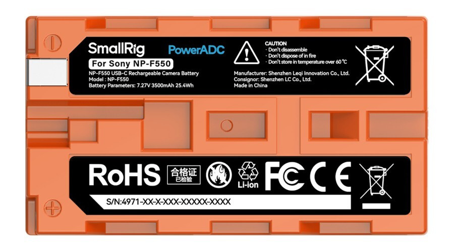 SmallRig 4971 NP-F550 USB-C Rechargeable Camera Battery Orange