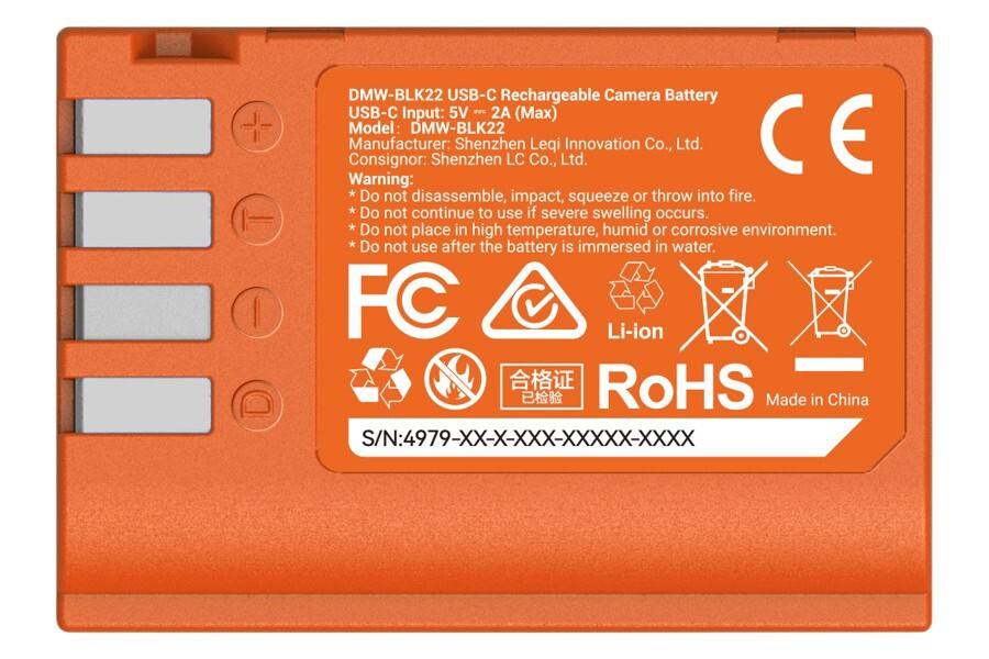 - 1x DMW-BLK22 USB-C dobíjecí baterie fotoaparátu