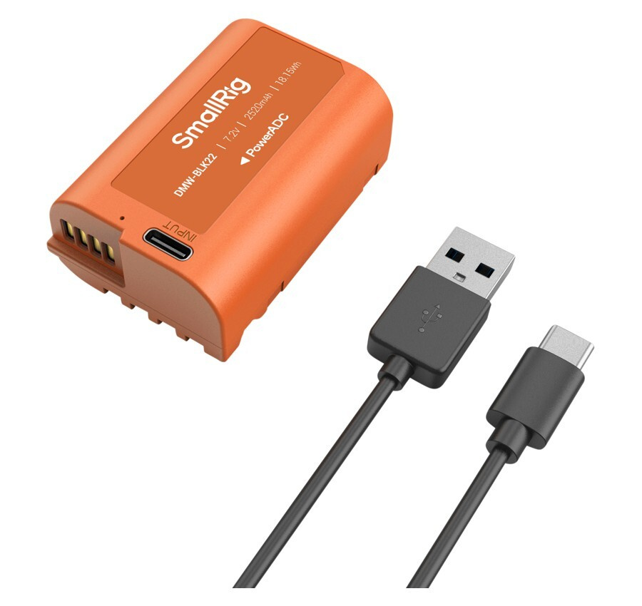 SmallRig 4979 Camera Battery USB-C Rechargeable DMW-BLK22 Orange