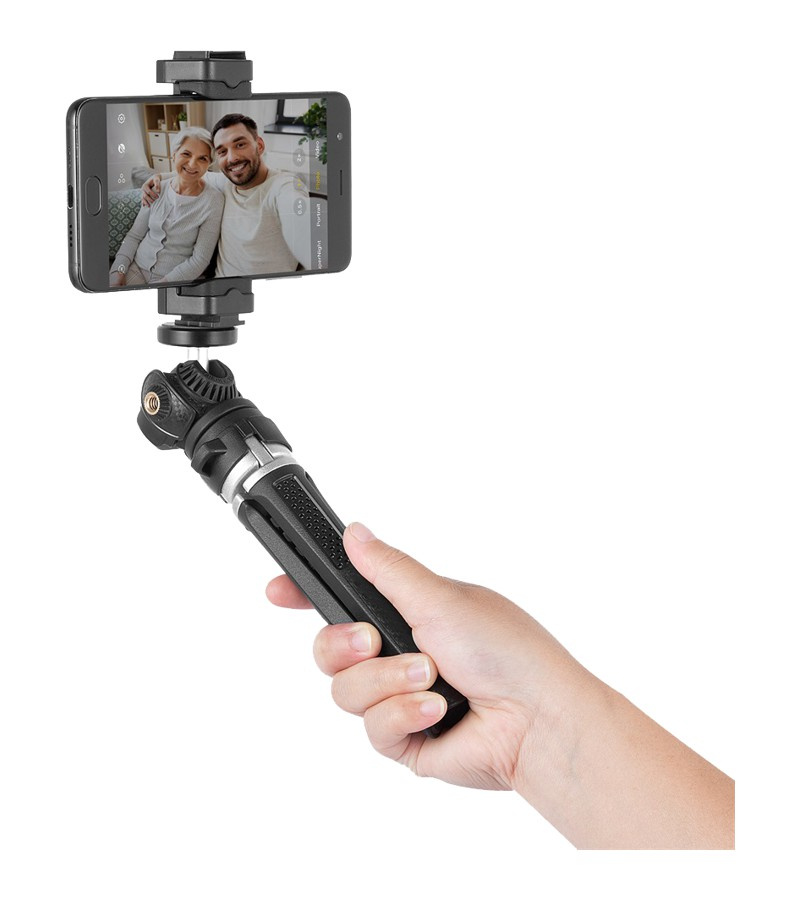 Je vybaven rychloupínacím držákem smartphonu o šířce od 56 mm do 86 mm.
