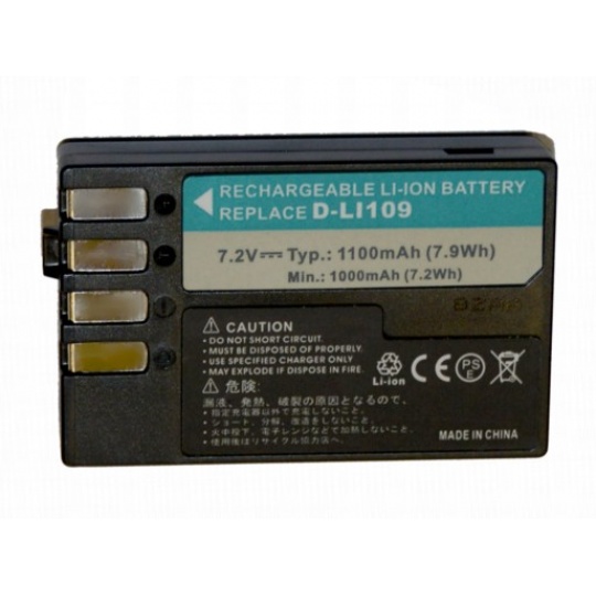 Neoriginální Li-Ion baterie pro Pentax T6 Power nahrazuje D-LI109 pro Pentax KP, K-70, K-30, K-50, K-S1... Kapacita 1100 mAh.