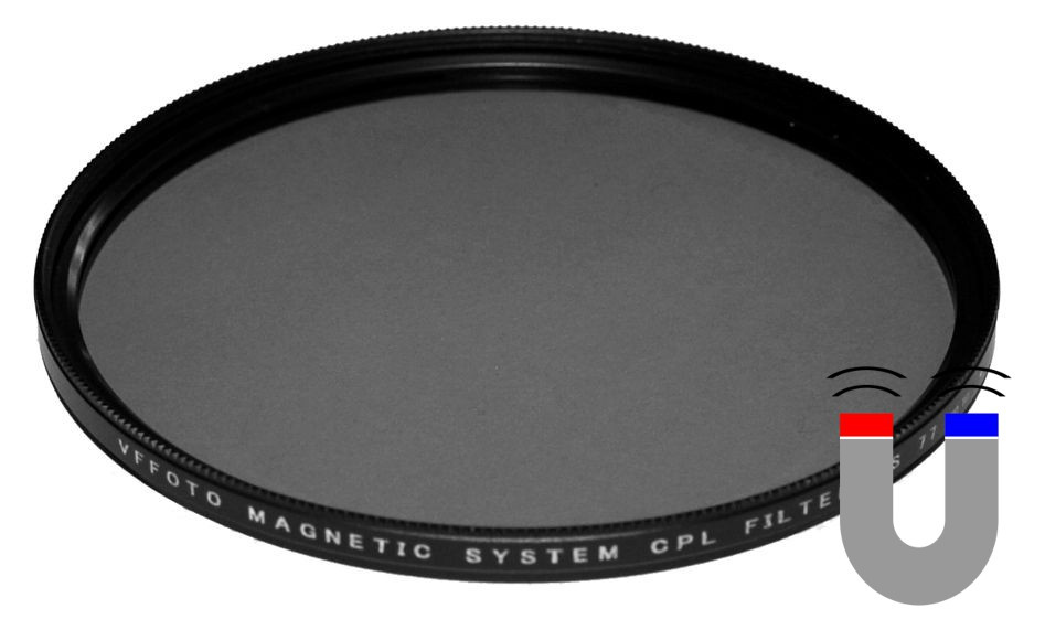Magnetický CPL filtr VFFOTO – nelze použít bez adaptéru nebo magnetického UV filtru.