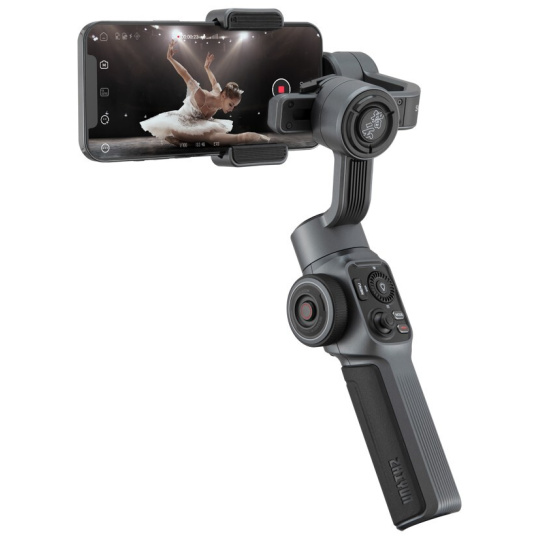 Nový gimbal Smooth 5 je menší než model Smooth 4, ale přesto má mnohem větší výkon díky vylepšeným motorům z magnetické oceli a vylepšeným algoritmům, které usnadňují natáčení ve všech úhlech. Tříosý design nabízí volnost pohybu ze všech perspektiv, dokonce i v nízkých a super širokých úhlech. Širší svorka držáku telefonu zajišťuje bezpečnější a snadnější filmování s použitím většiny modelů smartphonů a snadno se přepíná mezi režimem na výšku a na šířku.