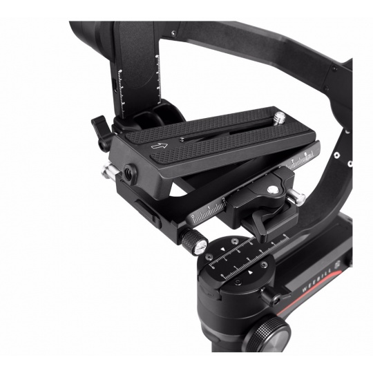 Weebill S používá rychloupínací destičku 2v1 (Arca Swiss i Manfrotto), což umožňuje snadnější nastavení a rychlejší přechod mezi zařízeními bez nutnosti opětovného vyvážení. Konstrukce západky umožňuje snadné uzamčení každé osy pro lepší vyvážení a snadnější složení stabilizátoru.